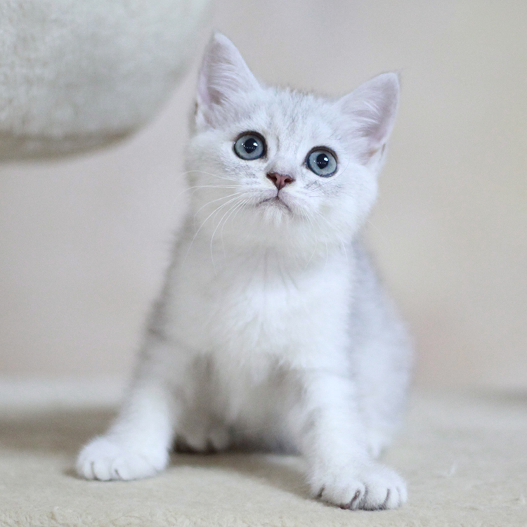 英短銀漸層體型中等,雄性體重通常為5-8千克,雌性為4-6千克。面部和眼睛圓潤(rùn),眼睛通常為藍(lán)色、綠色、黃綠色、黃色。四肢粗壯,胸部寬闊,尾巴粗大。擁有濃密的雙層被毛,背毛的六分之一到八分之一為灰黑色,其他部分為白色,具有獨(dú)特的銀灰色光澤,分為“尖端著色”或“陰影著色”。